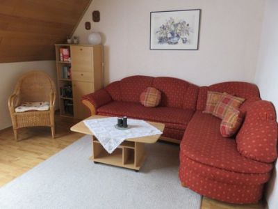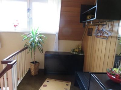 Im Wohn-/ Schlafraum befinden sich ein Schlafsofa, ein Fernseher mit DVD-Player und Videorekorder, ein Radio und ein CD-Player.