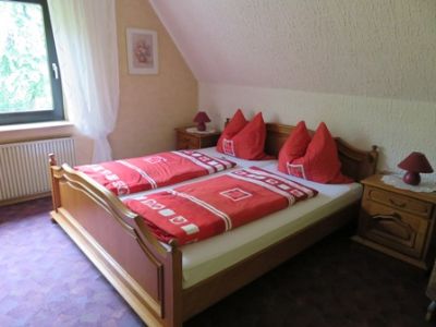 In diesem Schlafzimmer befinden sich ein Bett, ein Schlafsessel und ein Schrank sowie eine Kommode.