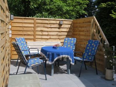 Die Sitzecke steht beiden Wohnungen zur Verfügung und ist direkt vor dem Eingang.
