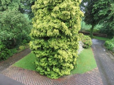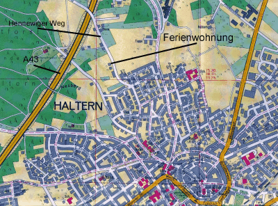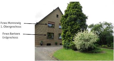 Der Parkplatz (vorm Baum) steht sowohl der oberen als auch der unteren Wohnung zur Verfügung. Weitere Parkplatzmöglichkeiten finden sich neben der Straße (Bildhintergrund/ Straßenlaterne).